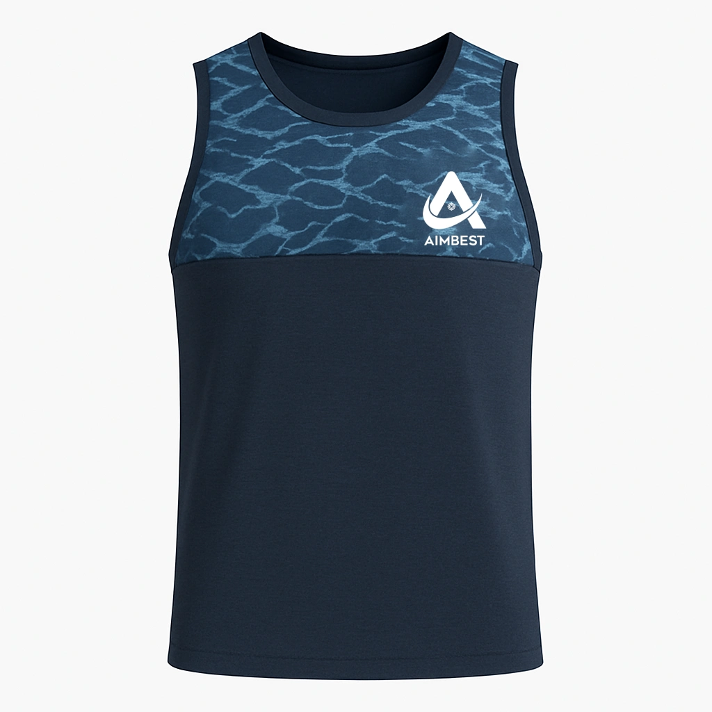 Turn heads and stay cool with the Aimbest Sleeveless Tank Top, designed to bring both comfort and style to your summer workouts. Featuring a vibrant two-tone design with an abstract chest pattern, this tank combines modern aesthetics with high-performance fabric. Its sleeveless cut offers unrestricted movement, while the lightweight, sweat-wicking material ensures you stay fresh and dry. Perfect for gym sessions, outdoor runs, or casual athleisure looks. Finished with a sharp white Aimbest logo that stands out with pride.